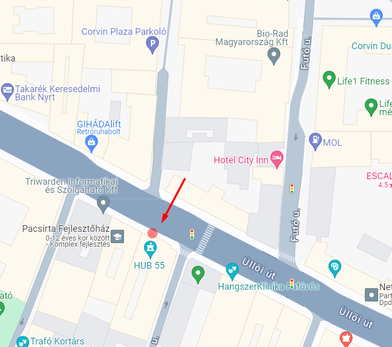 Parking: on the street, HUF 600/hour on weekdays 8-22h; or in Corvin Plaza (0-24): HUF 400/hour